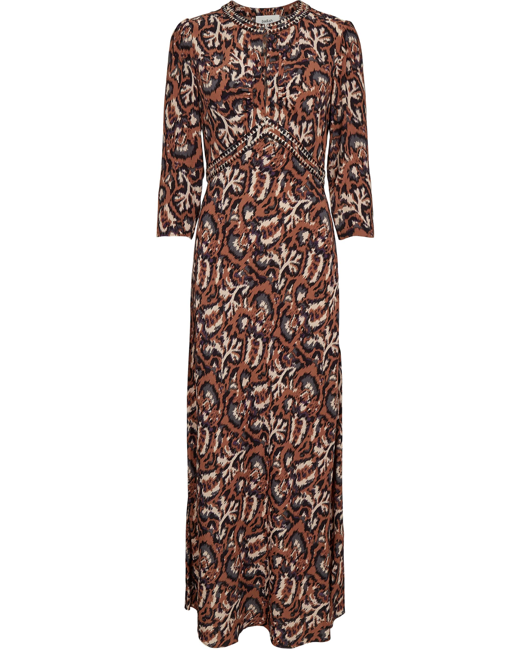 Lang kjole fra Ba&sh i en let kvalitet med det fineste print. Kjolen har trekvartlange pufærmer, en rund halsudskæring med slids og hægtelukning, en skjult lynlåslukning i siden samt diskrete broderingsdetaljer, der giver en fin effekt.