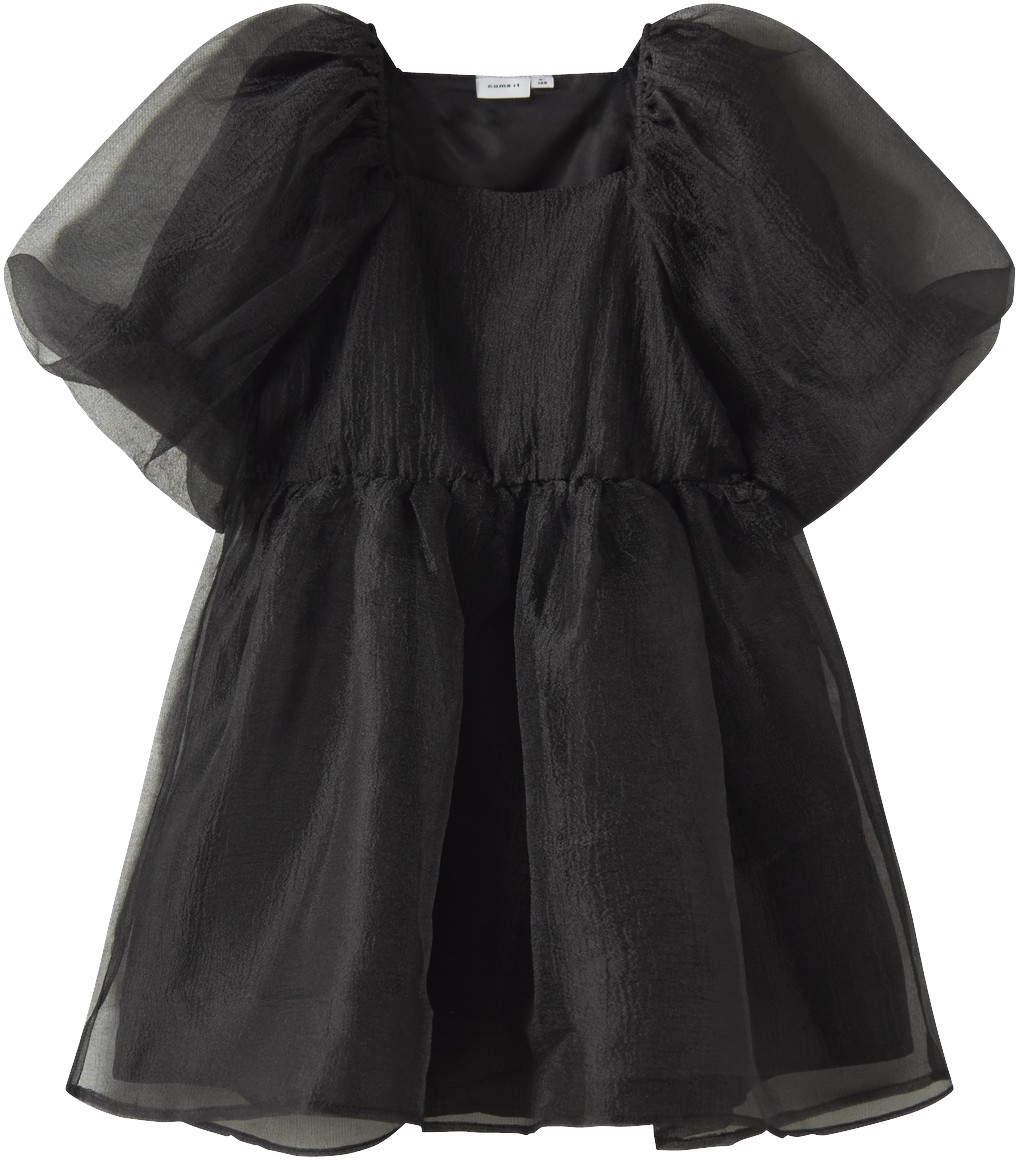 Opdater dit barns garderobe med skønne kjoler til både hverdag og fest.Chiffon er en let og fin, vævet kvalitet med en semitransparent effekt og en skinnende overflade. – Produkttype : Kjole – Hals : Firkantet hals – Ærme : Korte ærmer – Ærmer : Pufærmer